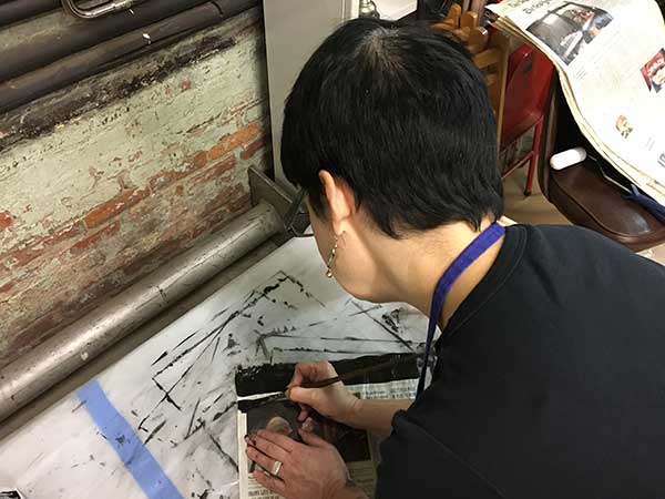 This edition comprises four portfolios each of which holds Chronicle pages that have been hand-sewn together in an accordion fashion. New York-based Chavez S. used a photogravure process to create the cover images of his four-volume set. Visually emphasizing the artistic heritages of East and West, the portfolio-style covers were printed on both the inside and outside. The Chronicle’s pages were hand-sewn to create 12 accordion-fold books, each containing one month of pages. Each volumes includes specially printed “name sheets” between the months that include all those listed in New York Times obituary pages as having died of HIV/AIDS during that year. The portfolios were printed at Robert Blackburn’s Printmaking Workshop in NYC.