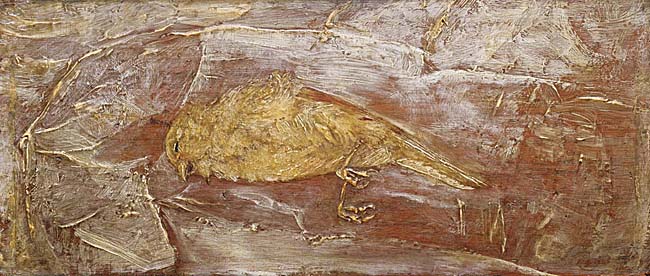 We’ve filed the stories next to a weathered postcard from the Phillip’s Collection in Washington, D. C. On the front is Dead Bird by Albert Pinkham Ryder (1890s.). On the back a handwritten note: “I didn’t know I had forgotten how to cry.”