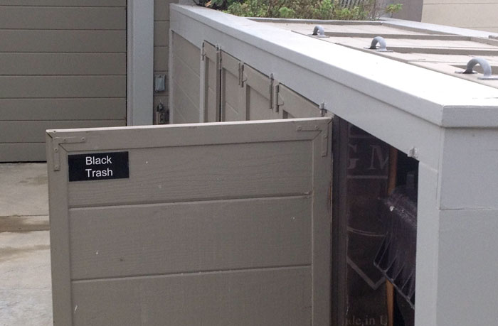 The door to an enclosed area for garbage cans had swung open exposing a seemingly ‘private’ directive. This part of town has three trash cans for different types of refuse: green for vegetation, blue for recyclables and black for garbage. Undoubtedly the compartment captured in the above image housed the latter trash can. Yet, once a force of nature dragged the private realm into the public, these two simple words became arresting at least, and to some members of the population even assaultive.