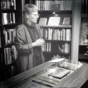 The works by Hans Haacke and Charles Gaines on the walls behind her are part of “Mind the Gap,” a Kent Gallery exhibition inspired by the ICI’s book Searching for Sebald with works that ‘operate between and within signs in order to discover, tease out, and make manifest meaning that is neither obvious nor orthodox.’ The Gaines piece (right) draws its inspiration from Georges Bataille, the subject of the ICI’s first full-length publication. These ‘Sebaldian’ moments no longer surprise us. But we were inspired by the full-length exhibition catalog produced solely for the internet. We applaud this impulse to remove commodity from acts of thought.