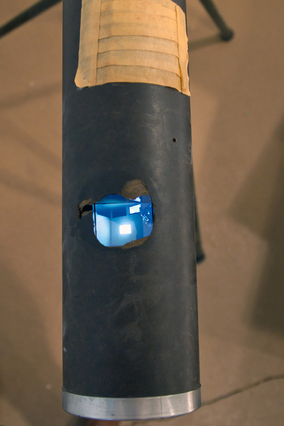 Ayeroff: The telescope belongs to the ICI archive, the hole included. It is a glimpse at the passing of time, the changing of light, a hidden, momentary step into another dimension.